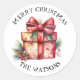 Mignons blanc rouge et vert aquarelle cadeau de Noël autocollants personnalisés.