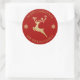 Autocollant rond personnalisé Noël joyeux renne rouge et or pailleté.