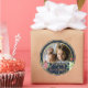 Sticker Rond Joyeux Noël Photo personnalisée sur Blue & Gold