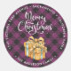 Sticker Rond Joyeux Noël Plaid Violet Retourner l'adresse Étiqu