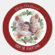 Sticker Rond Joyeux Noël Rouge Aquarelle Wreath Photo famille