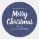 Sticker Rond Joyeux Noël Rouge Bleu Marine Simple Flocon de nei