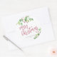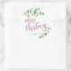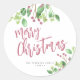 Style moderne Joyeux Noël rouge vert manuscrit typographie script cadeau simple autocollant rond étiquette avec votre nom avec l'aquarelle botanique vert et les baies saintes.