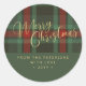 Sticker Rond Joyeux Noël rustique plaid rouge vert or script
