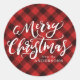 Sticker Rond Joyeux Noël rustique Script Rouge Plaid
