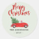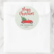 Sticker Rond Joyeux Noël Sapin de Noël dans une voiture rouge d
