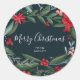 Joyeux Noël! élégante typographie simple minimaliste autocollants d'affaires, parfait pour l'hiver et la saison de Noël avec illustration florale rouge et verte sur bleu marine foncé. Un design festif pour remercier vos clients.