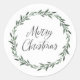 Sticker Rond Joyeux Noël Simple Rustique Aquarelle Verdure