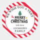 Bande rouge et blanche adorable "Joyeux Noël" Classic round Sticker de Deer-Tree-Star.