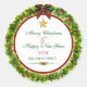 Couronne de Noël en vert et rouge bordeaux. Elégant Joyeux Noël et Bonne nouvelle année personnalisable texte autocollant modèle.