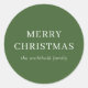 Autocollants de Noël vert moderne avec un design simple et minimal avec l'avenant "Joyeux Noël" et votre nom de famille.