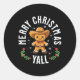 Sticker Rond Joyeux Noël Yall Gingerbread Cowboy Western