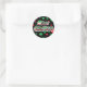 Sticker Rond Joyeux Noir de Noël, Rouge Vert Polka Dot