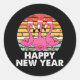 Sticker Rond Joyeux Nouvel An Drôle Flamant rose rose passionné