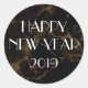 Sticker Rond Joyeux Nouvel An Or Marbre Noir Élégant