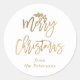 Sticker Rond Joyeux or moderne script de Noël mistletoe blanc