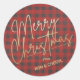 Sticker Rond Joyeux or Noël Rouge Buffle Plaid
