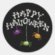 Happy Halloween fait d'os squelettiques avec des araignées mignonnes et éffrayantes prêtes à mordre! Ce design fantaisiste sur autocollants personnalisés est amusant pour ajouter une touche déplaisante aux enveloppes et traiter les sacs ou donner comme un gâteau non-bonbon pour les enfants. Vous pouvez personnaliser avec n'importe quel texte si vous le souhaitez.