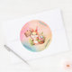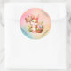 Happy stickers Pâques avec un lapin tenant un panier avec des fleurs et des oeufs colorés