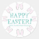 Happy Pâques turquoise rose et blanc texte personnalisé mignons lapins moderne amusant Classic Round Stickers