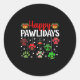 Sticker Rond Joyeux Pawlidays Funny Christmas Chien Paw Xmas Ch
