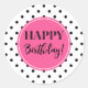 Sticker Rond Joyeux Points blancs noirs roses d'anniversaire