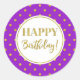 Sticker Rond Joyeux Points d'or blanc violet d'anniversaire