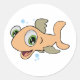 Ce petit poisson aux yeux grands semble vraiment heureux ! Il est entouré de bulles bleues et on dirait qu'il nage sous l'eau.