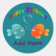 Sticker Rond Joyeux Poisson D'Anniversaire, Coeur, Personnalisé