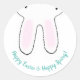 Happy Pâques Happy Printemps mignon lapin de Pâques texte personnalisé drôle Stickers Classic rond. Drôle lapin à l'envers