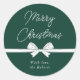 Ajoutez la touche finale à votre emballage cadeau cette saison de vacances avec ces élégants stickers ronds de Noël vert et blanc. Doté d'une police de style manuscrite qui dit "Joyeux Noël", un arc blanc dessiné à la main avec votre nom personnalisé en dessous.
