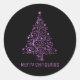 Sticker Rond Joyeux sapin de Noël noir métal rose