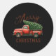 Sticker Rond Joyeux sapin de Noël sur le camion rouge Wagon Vin