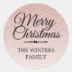 Une parties scintillant rose floue moderne, fausse ombre sticker Joyeux Noël ou sceau d'enveloppe que vous pouvez personnaliser avec votre nom de famille ou vos noms. Le motif à l'ombre de la parties scintillant rose se fonde sur un arrière - plan blanc. Le texte "Joyeux Noël" en noir est mis en écriture moderne. Enveloppe de Noël parfaite avec motif moderne, pétillant, luxe et glamour.