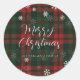 Sticker Rond Joyeux Snowflakes Noël Jouer Script Plaid Personna