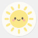 Sticker Rond Joyeux soleil jaune avec un visage souriant