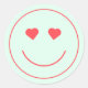 Sticker Rond Joyeux Visage Coeur yeux | Vert menthe