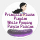 Priscilla ramasse des boutons tout en balançant des cornichons violets.
