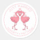 Sticker Rond Just Married Pink Flamingos Tropical Beach Wedding
