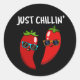 Sticker Rond Juste Chillin Funny Chili Peppers Pun Dark BG