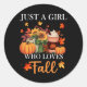 Sticker Rond Juste Fille qui aime Chute saison Citrouille Épice