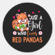 Sticker Rond Juste fille qui aime les pandas rouges Panda rouge
