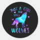 Sticker Rond Juste un qui aime Wolves Galaxy Space Wolf