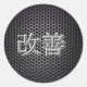 Sticker avec "Kaizen" imprimé en kanji argent au-dessus de la peau en fibre de carbone. Il s'agit d'améliorer le processus et la qualité finale.