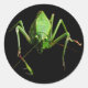 Cet autocollant présente un katydid vert vivant. Les Katydids sont des insectes de taille moyenne à grande. Elles sont généralement vertes, parfois marron, et sont camouflées pour se fondre avec les feuilles sur lesquels elles se nourrissent. Leur très longue antenne les distingue des sauterelles. Vu de près, ils semblent être des aliens de l'espace !