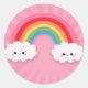 Sticker Rond Kawaii Arc en ciel et nuages sur Starburst rose