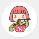 Sticker Rond Kawaii Fille mangeant Ramen avec baguettes