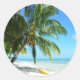 Sticker Rond Kayak jaune sur une plage de sable blanc collant r