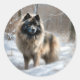 Sticker Rond Keeshond Qu'Il Neige Noël