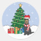 Cachez votre correspondance de Noël avec un autocollant Kelpie Xmas. Il présente une illustration de race de chien d'une Kelpie australienne assise devant un sapin de Noël décoré avec des cadeaux emballés en dessous.